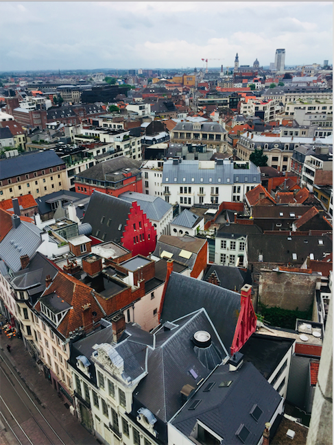 Later adventures in Ghent consisted of lots of lots of stair climbing to the top of the Belfry in the Church of St. Nicholas. To reach the top of the 11th-century Belfry, we had to climb 350 stairs in a very cramped spiral staircase that had people moving in two directions. While the climb was treacherous, it was worth the amazing view of Ghent. We were able to see the old part of Ghent and compare it to the new industrial side of Ghent. It is amazing to think how much time this church has stood for. In fact, the church bell played different beat patterns of music to detect if invaders were approaching the city.